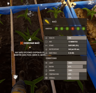 Cuando lleguen al estado de sapling, mantenemos pulsada la e y le damos a recoger esqueje.